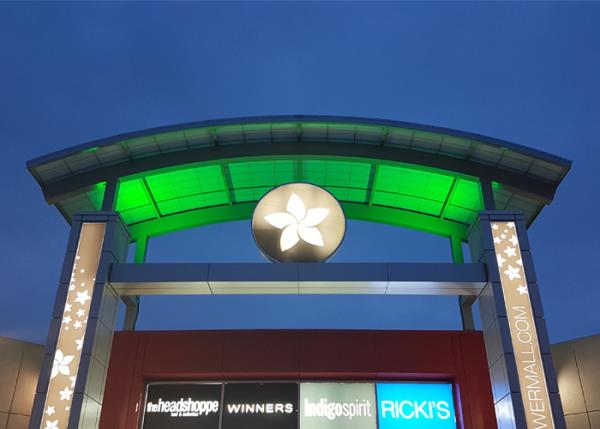 To update aesthetics, improve visibility, as well as energy efficiency, Mayflower Mall renovations included Solid State Luminaire’s 9” High Powered Flood Lights. These versatile SSF2109 RGBW compact luminaires are made of marine grade, corrosion resistant, die-cast aluminum to provide maximum protection against contaminants and the environment.
