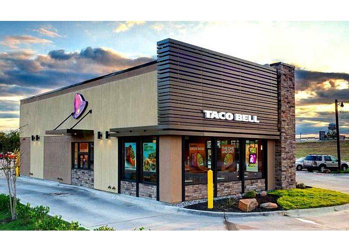 Taco Bell created a new exterior design for their national chain. The facade has a wood-slat appearance to echo a southwestern charm and offset the company brand. Behind the slats are illuminated with static purple colored LEDs using